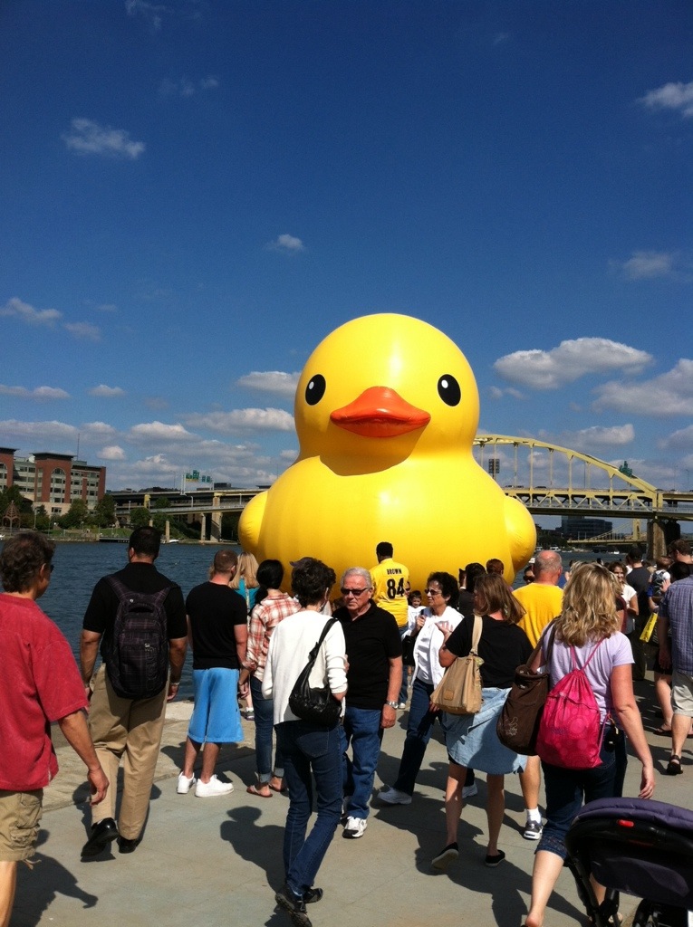 If you live in Pittsburgh, you know exactly what it means when someone asks if you’ve seen the duck. For three weeks, our beautiful river will be home to a 40 foot rubber duck, yes, you read that right, part of The Rubber Duck Project: “a series of sculptures that has floated along the world’s waterfronts, delighting onlookers in places like Amsterdam, Osaka, Sydney, Sao Paulo, and Hong Kong. Artist Florentijn Hofman views the Duck as a lovable global ambassador. “We are living on one planet,” he told WESA Pittsburgh, “and all the waters in the world become our global bathtub, so we are one family where we have to take care of each other in this bathtub of the rubber duck.” (Quoted from this article).